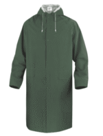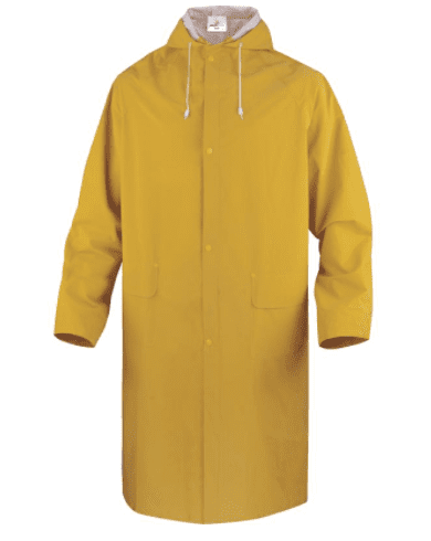 Fabricado con poliéster y doble impregnación de PVC, el abrigo es resistente al agua y duradero, lo que lo hace perfecto para soportar lluvias intensas. Las costuras termoselladas garantizan que no haya filtraciones de agua, manteniéndote seco todo el tiempo. Además, cuenta con una capucha fija que proporciona protección adicional contra la lluvia y el viento.