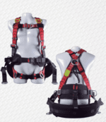 Arnés multipropósito de seis puntos de anclaje con faja lumbar y silla, hilos en poliéster de alta tenacidad, hebillas de posicionamiento y dos adicionales en la silla para trabajo en suspensión, la faja lumbar y la silla brindan una comodidad en caso de largos periodos de tiempo en suspensión. Especial para trabajos de limpieza de fachadas, limpieza de vidrios, edificios e instalación de fibra óptica entre otras.