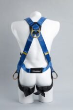 Elemento parte de un sistema personal de detención de caídas, provistos de 3 Argollas principales, una argolla D dorsal para restricción y detención de caídas y dos argollas D laterales para labores de posicionamiento. (Diseño en H)