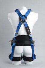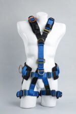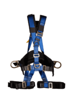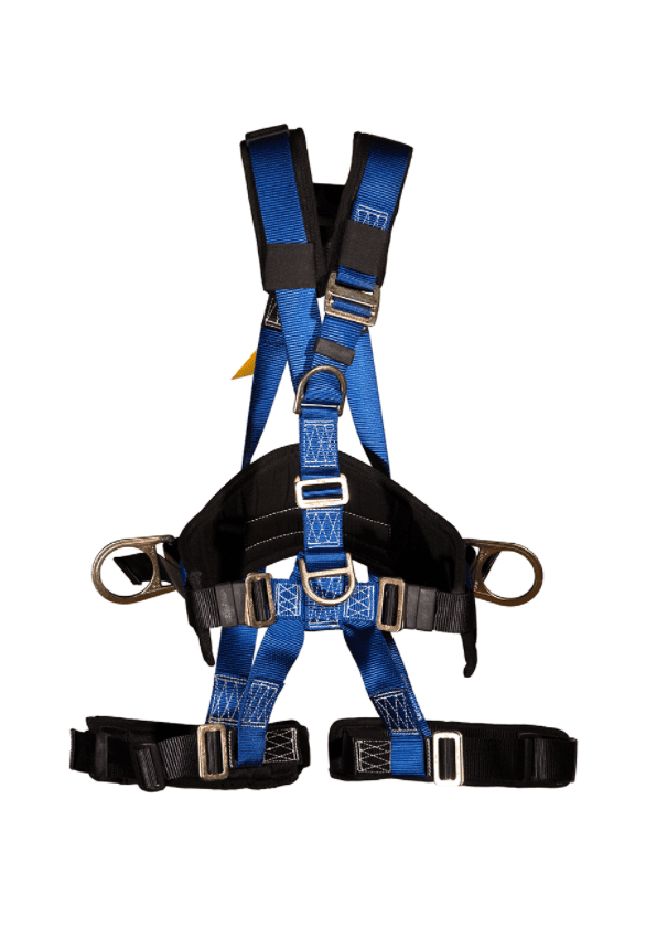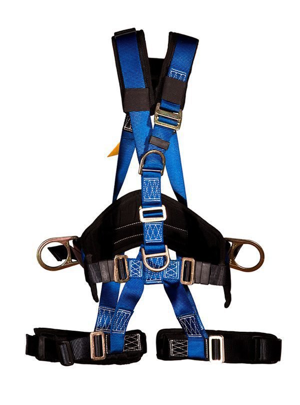 • 5 argollas en D fabricadas en acero forjado con resistencia de 5.000 libras (1 pectoral, para ascenso y descenso controlado, 1 a la altura de la cintura parte frontal para actividades de rescate, 1 dorsal para detención de caídas, y 2 laterales para posicionamiento a un punto fijo)