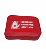 Bolso tipo morral o maletín térmico con bolsillos, diseñado para transportar y organizar insumos de primeros auxilios de manera segura.