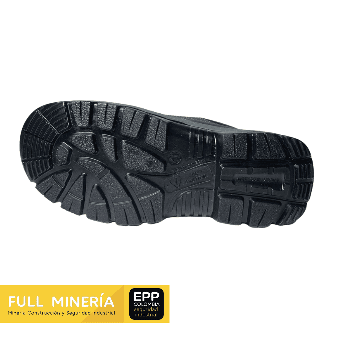 Su diseño inyectado garantiza una unión sólida entre la suela y el cuerpo del calzado, aumentando la vida útil del producto. La suela tridensidad antideslizante proporciona una tracción superior en superficies húmedas, aceitosas o irregulares, mientras que su entresuela espumada ofrece mayor amortiguación y confort durante todo el día.