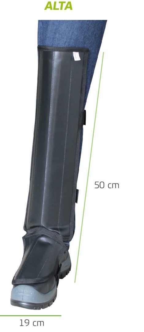 Disponible en talla alta, está diseñada para cubrir una extensión mayor de la espinilla, brindando protección óptima en diferentes labores.