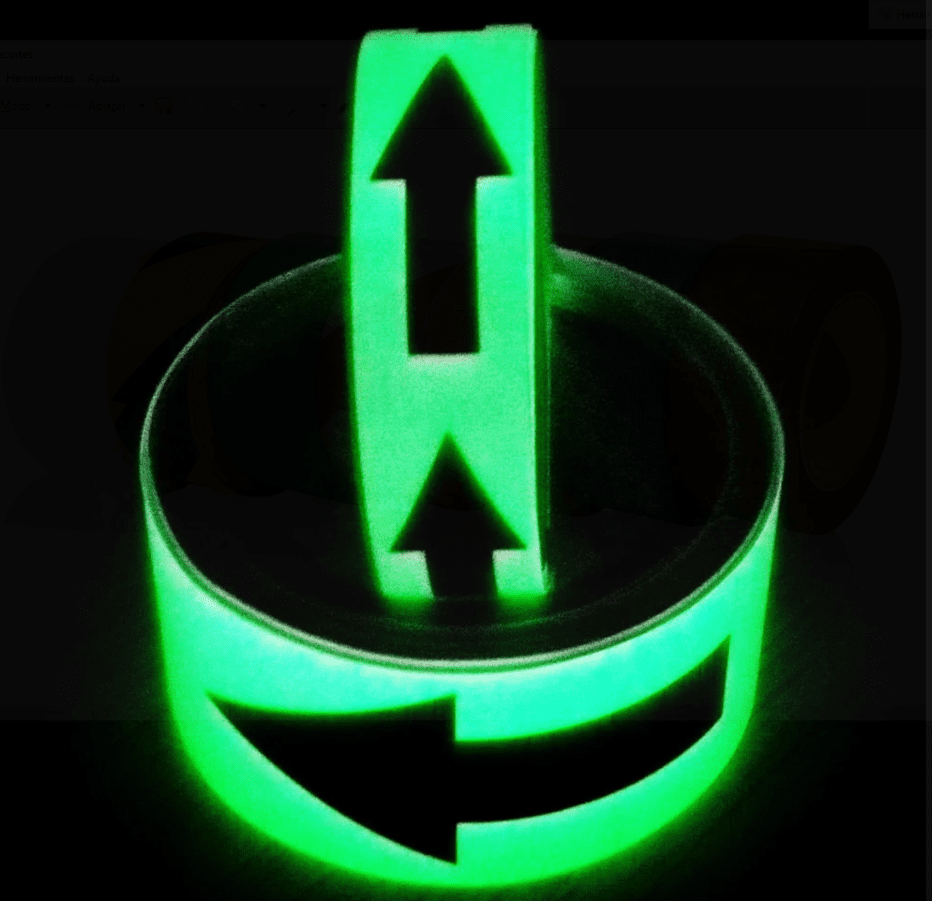 Cinta Fotoluminiscente adhesiva con flechas absorbe y almacena energía