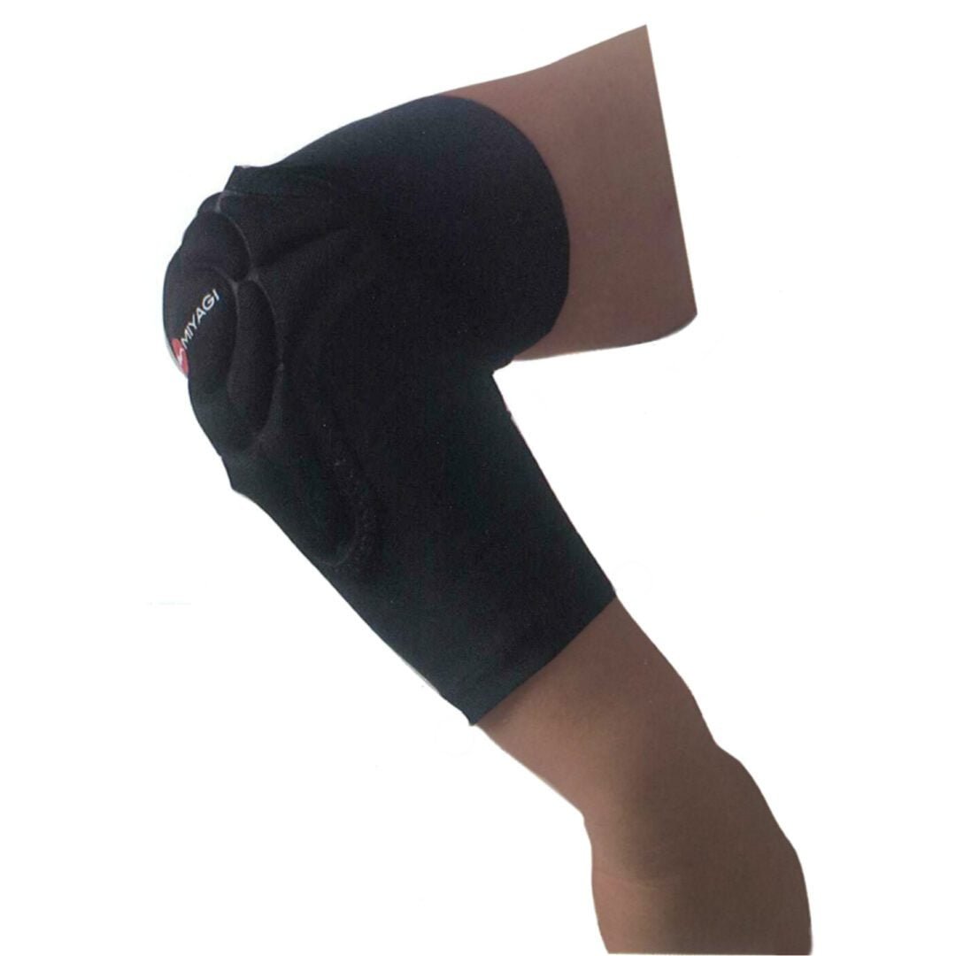 Codera de la linea de protección MIYAGI esta hecha de material elástico de alta calidad, proporcionando una presión uniforme y constante apoyo a los músculos y a las articulaciones.