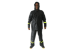El conjunto está elaborado en poliéster recubierto en PVC, lo que le permite resistir el paso del agua, aceites y productos químicos en bajas concentraciones. Además, cuenta con cinta reflectiva especial en pecho, espalda y mangas, ofreciendo visibilidad en condiciones de baja iluminación.