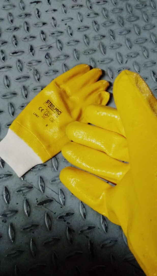 Guante Soportado en Algodón con Recubrimiento de Nitrilo Amarillo – Protección y Agarre Superior