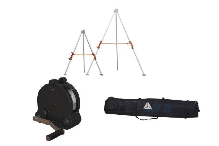 El trípode TRA32 es robusto y fácil de ajustar, proporcionando un punto de anclaje seguro para trabajos verticales. Combinado con el winche TR00630, que permite controlar de manera eficiente la subida y bajada de los trabajadores, este kit asegura movilidad y seguridad durante las operaciones en alturas. Además, cuenta con una bolsa TRBAG3, que facilita el transporte y organización de los dispositivos.