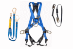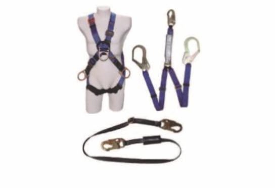Arnés multipropósito 4 argollas cruzado + Eslinga doble terminal graduable con mosquetón 2 1/4″ estructurero y absorbedor + Eslinga de posicionamiento graduable con mosquetón de 3/4.