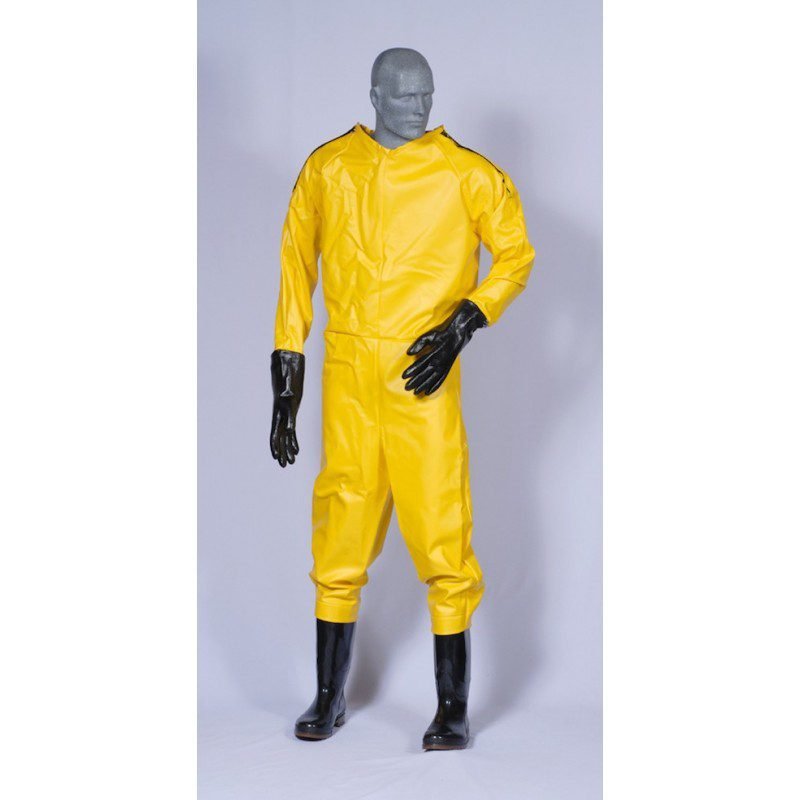 El overol escafandra impermeable es una prenda de protección personal (EPP) de alta resistencia, diseñada para brindar aislamiento total del cuerpo frente a líquidos, sustancias químicas, humedad y agentes contaminantes. Su fabricación en PVC reforzado con soporte en poliéster garantiza impermeabilidad absoluta, durabilidad prolongada y un desempeño confiable en entornos industriales exigentes.