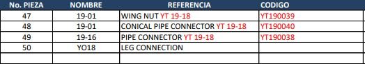 Para comprar repuestos para perforadora Yt18 guiarse por códigos de imágen.