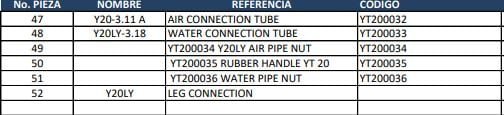 Para comprar repuestos para perforadora yt20  guiarse por códigos de imágenes.