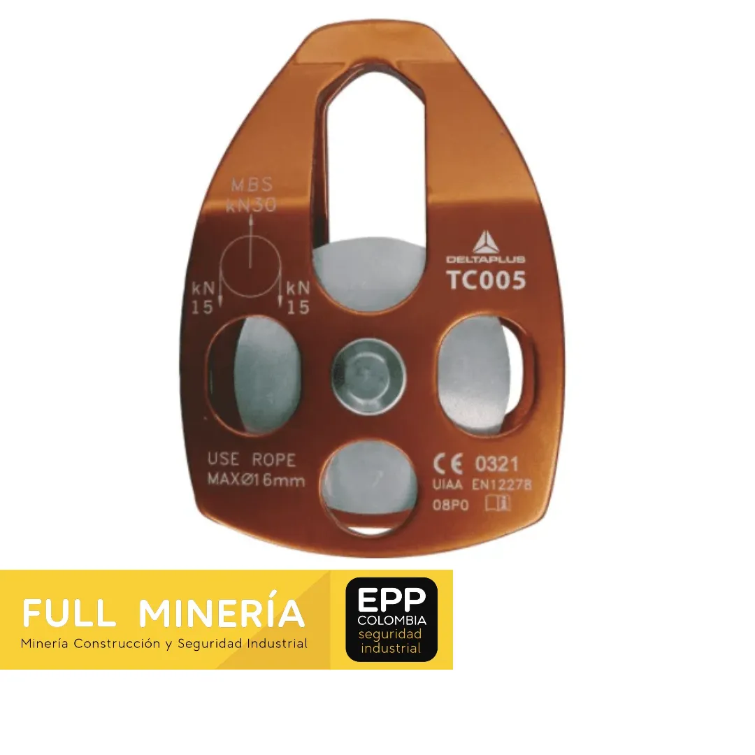 La Polea de Bridas es un dispositivo de seguridad diseñado para facilitar el uso de cuerdas trenzadas en trabajos de levantamiento o desplazamiento de cargas. Esta polea es ideal para trabajos donde se requieren cuerdas de menos de 16 mm de diámetro, ofreciendo un rendimiento excelente y seguridad en aplicaciones de trabajo en altura, rescate y otras tareas que involucren sistemas de poleas.