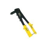 Mango con resorte expulsa exceso de remache automáticamente. Diseño de nariz delgada cabe en lugares de difícil acceso. Remachadora de ángulo recto. Mango largo hace remachadora fácil de apretar.