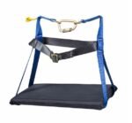 SILLA PARA TRABAJO EN SUSPENSIÓN: con cojín impermeable mayor confort, soportado por correas en reata de alta resistencia y cinturón ajustable posee dos argollas frontales para suspensión y mosquetón carabinero para la unión de las dos argollas.
