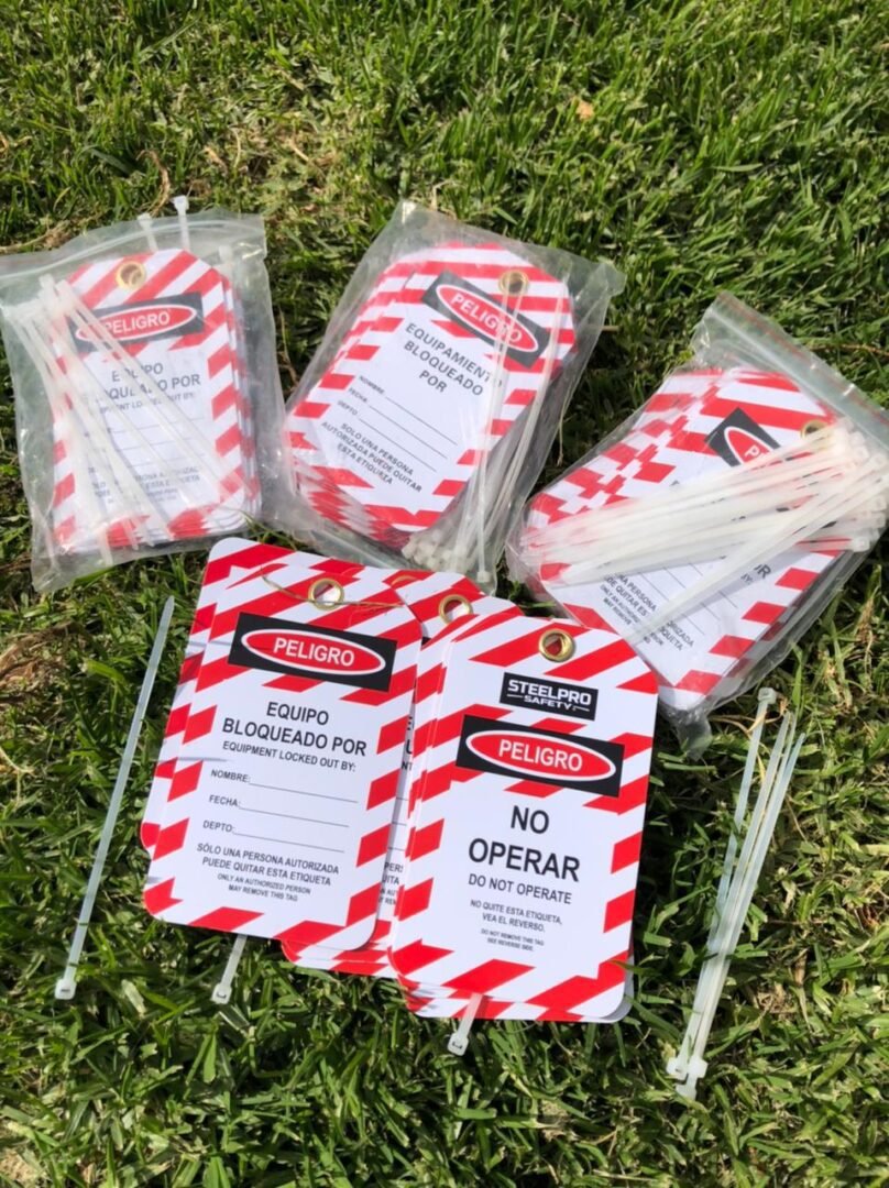 Cada tarjeta incluye un ojal metálico resistente para facilitar su sujeción, junto con las bridas que vienen en el paquete. El set incluye 25 unidades, ideal para señalizar múltiples fuentes de energía o tener un stock disponible en áreas de trabajo.