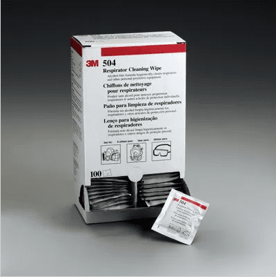 Las toallitas de limpieza para respiradores 504 de 3M™ limpian y refrescan los respiradores elastoméricos, y eliminan la suciedad y la transpiración. Los usuarios pueden usar estas toallitas húmedas para mantener la higiene y la protección sanitaria en respiradores utilizados por más de una persona. Cada toallita desechable se sella en su propia envoltura protectora para que se mantengan más frescas y húmedas. Las toallitas limpian la pelusa y la suciedad fina de forma fácil y no contienen alcohol ni productos químicos penetrantes. Las toallitas se ofrecen en presentaciones de 100 por caja.